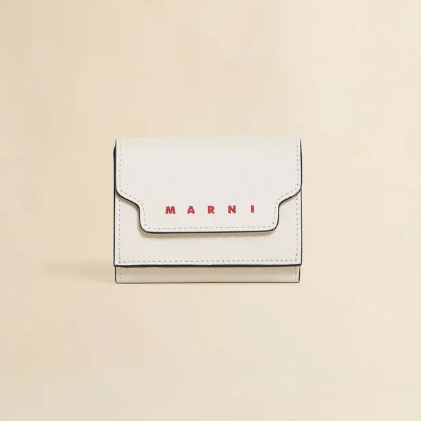 ホワイト サフィアーノレザー製三つ折りウォレット(MARNI)